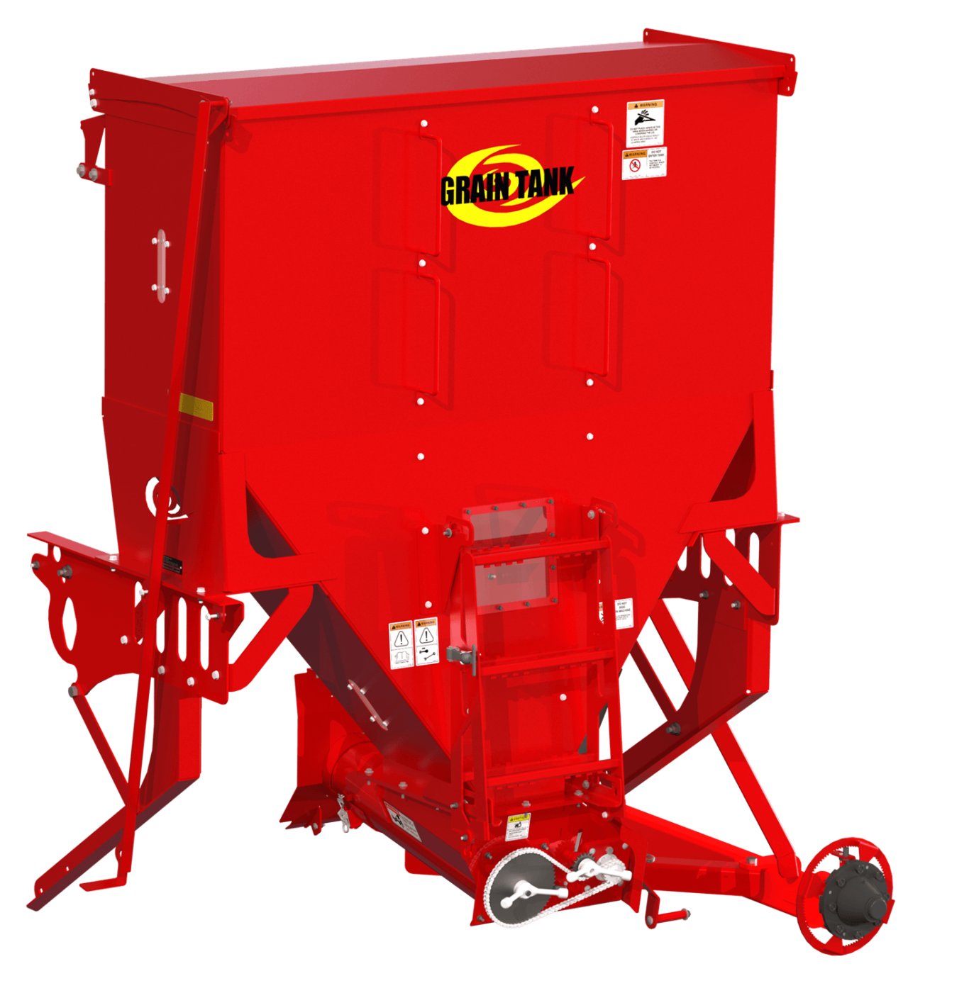 The Grain Tank is a variable speed hydraulic drive feed system that allows for even and consistent flow.