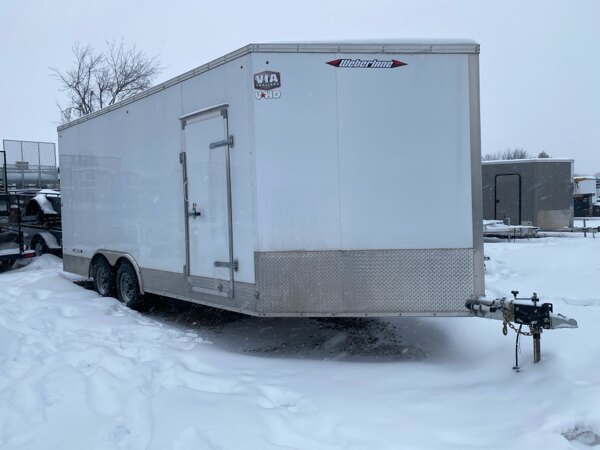 2021 Weberlane W8518ACTW All Aluminum Cargo Trailer,n8.5' x 18' x 5' vnose, ramp, curbside man door, diamondnplate ext., e track on floor, spare tire.