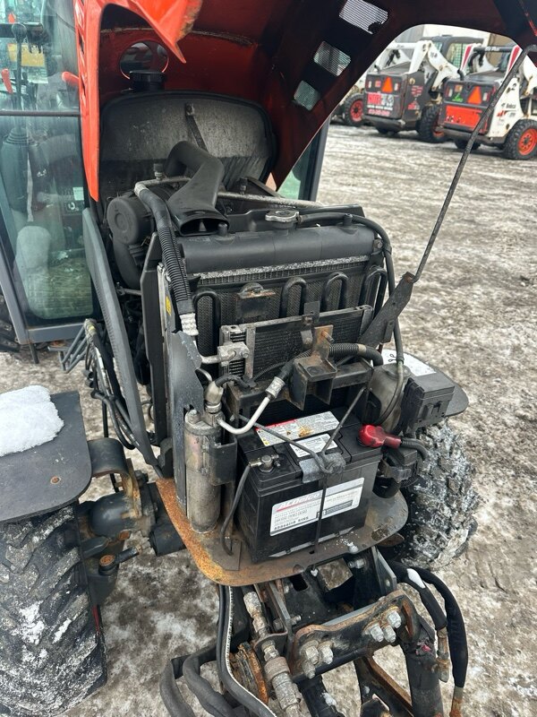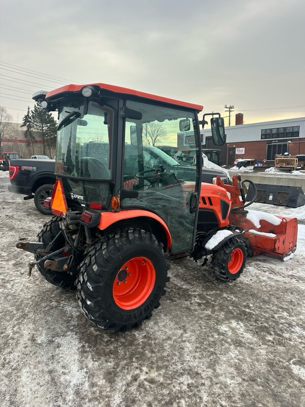 25.8 HORSEPOWER COMPACT TRACTOR WITH 1305CC ENGINE,nTANDEM HYDRAULIC PUMPS, FOUR WHEEL DRIVE, 3 RANGEnHYDROSTATIC TRANSMISSION, FACTORY CAB WITH AIR, BEACONnLIGHTS, KUBOTA FRONT MOUNT 51" SNOWBLOWER WITH HYDRAULICnROTATION AND DEFLECTOR
