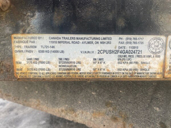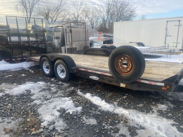18' low bed tilt trailer, 80" between fenders, full bed tilt with electric over hydraulic tilt, spare tire, 2 x 70000 lbs axles